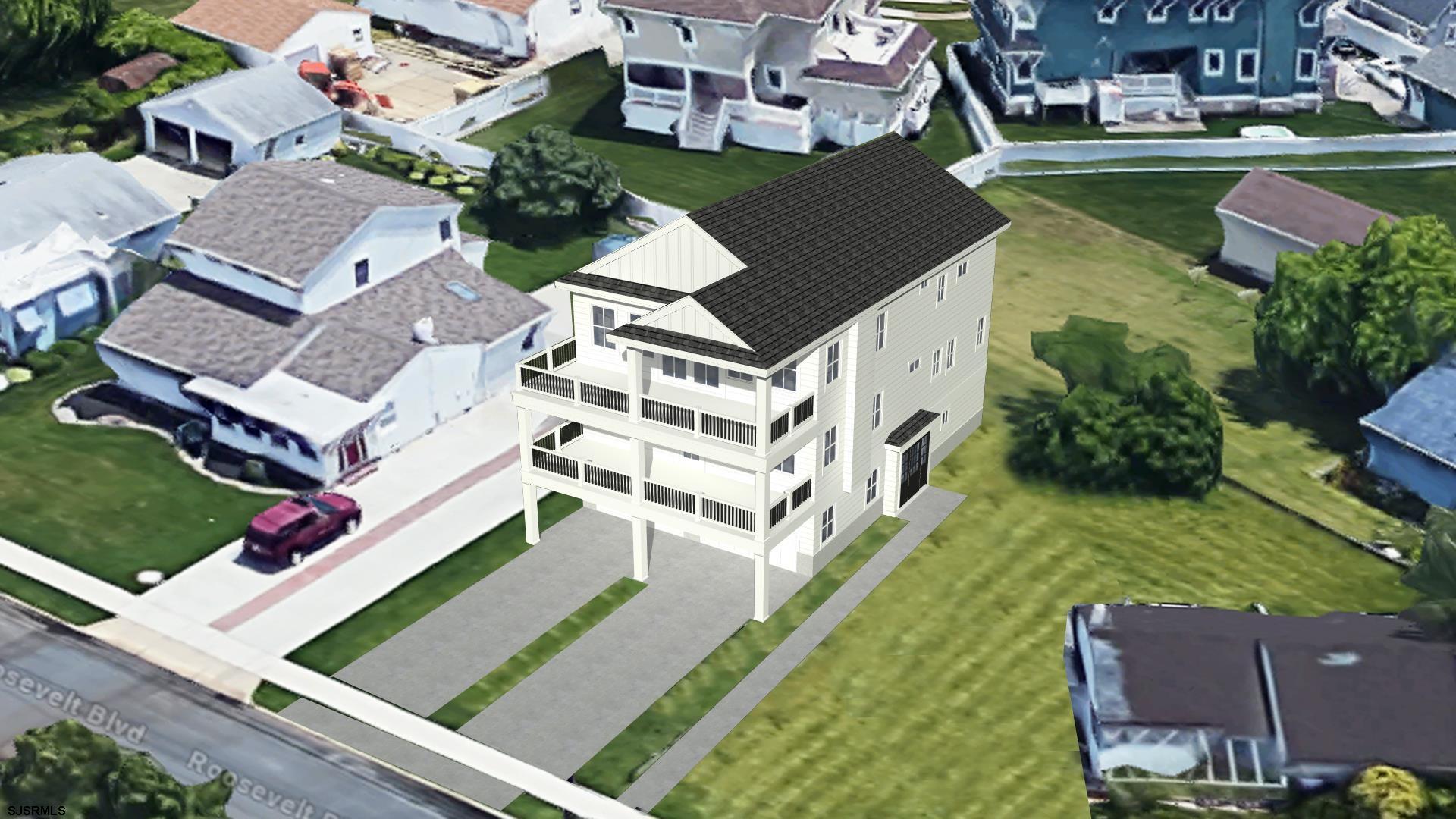 Welcome to your beach oasis at 22 Roosevelt Blvd! This one-of-a-kind New Construction single family home is situated on a huge 55' x 120' lot and offers a unique floor plan with upside down living featuring unobstructed views of the intracoastal waterway and meadows. This custom designed single family home is loaded with upgrades including a gourmet kitchen with quartz stone countertops, tile backsplash, stainless steel appliances, large center island, and upgraded kitchen cabinetry. The spacious floor plan will feature cathedral ceilings throughout the living room, dining room and kitchen. 5 large bedrooms (two en-suites), large walk-in closet, 3 custom tiled bathrooms, powder room, second living room, ELEVATOR, multi-zone heat/AC, and hardwood floors. Multiple decks & porches on the front and rear of house to enjoy the summer breezes. This home also features a fully elevated ground floor which allows for a large 2+ car garage plus ample parking exterior and enclosed outdoor shower. Plenty of room in the backyard to add a POOL. Buy now and help select the ultimate finishes and colors. Plans and specs are available upon request. |