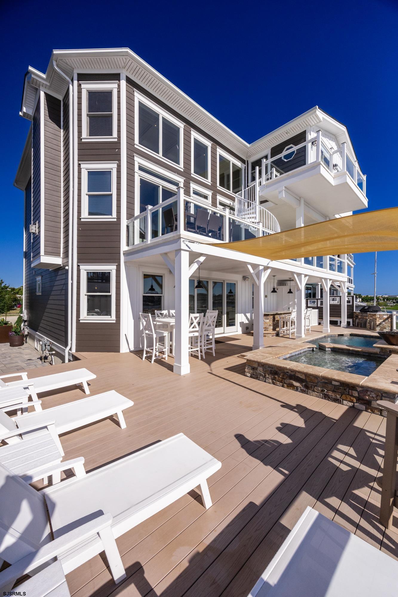 At a beach house, life is different. Time doesn't move hour to hour but mood to moment. Calming and sophisticated, relaxing and vibrant, designed to make the most of every mood and moment. Beautiful from the approach and spectacular for the finish with incredible water views and access from your private dock. Just take a moment to look at those magical sunset photos and picture yourself with friends and family gathered together enjoying life on the multi-level decks off the rear of the home. Those views and sunsets are out of a dream! We can hear the laughter and fun as the entertaining options abound with a massive full bar next to the BBQ grill with built-ins to make the most of the shore life. A heated pool and hot tub awaits you after a long beach day or unwinding in the quiet of the evening. A ramp leads to the floating dock on the bay where you'll find three jet ski slips and an electric boat lift to assure that the salt life is all yours to enjoy. Wonderful spaces, a shaded area with a sail awning, places to dine and recline, drink and socialize make this one special home. A spiral staircase adds access to the upper level deck where you'll find the best views. A beachy vibe extends throughout the home and includes a bar room and sitting area, enhancing your entertainment demands and keeping your guests connected as they enjoy everything this amazing home has to offer. This floor also features a bedroom and a full bathroom with access to the main deck. The kitchen is definitely well-dressed, offering professional-quality appliances, granite countertops, and appointments that will suit the most discerning chefs. It blends seamlessly with the living area where you'll find floor to ceiling windows bringing the water views of this perfect location inside for you to enjoy every moment of the day. This room also includes a gas fireplace & beachy millwork on the ceilings, fireplace and walls. Don't forget the mini bar to entertain guests in every common area! You’ll have access to the first balcony with room to sit and enjoy your morning coffee or simply watch the sunset on the bay. An elevator makes life easy in this multi-level home. On the first balcony, a spiral staircase leads to the owner’s suite. This bedroom is adorned with shiplap accents on the ceiling to expand the beachy vibe. The walk-in closet has ample shelving and drawers to store all your beach attire. The ensuite bathroom includes a luxurious soaking tub, a steam shower, his and hers sinks, as well as a gas fireplace for cooler nights. French doors lead to your private cozy sitting area. If you thought it couldn't get better, it does! Your private balcony has the best view in the house! There's an additional bed and bath on this level and your top level is home to 2 more bedrooms with private bathrooms. Beautiful Brigantine with fantastic beaches, wonderful restaurants, and a quiet lifestyle within reach of the nightlife and fun of Atlantic City! You've earned it, you deserve it, and now is your time to enjoy it! Schedule a private tour today!