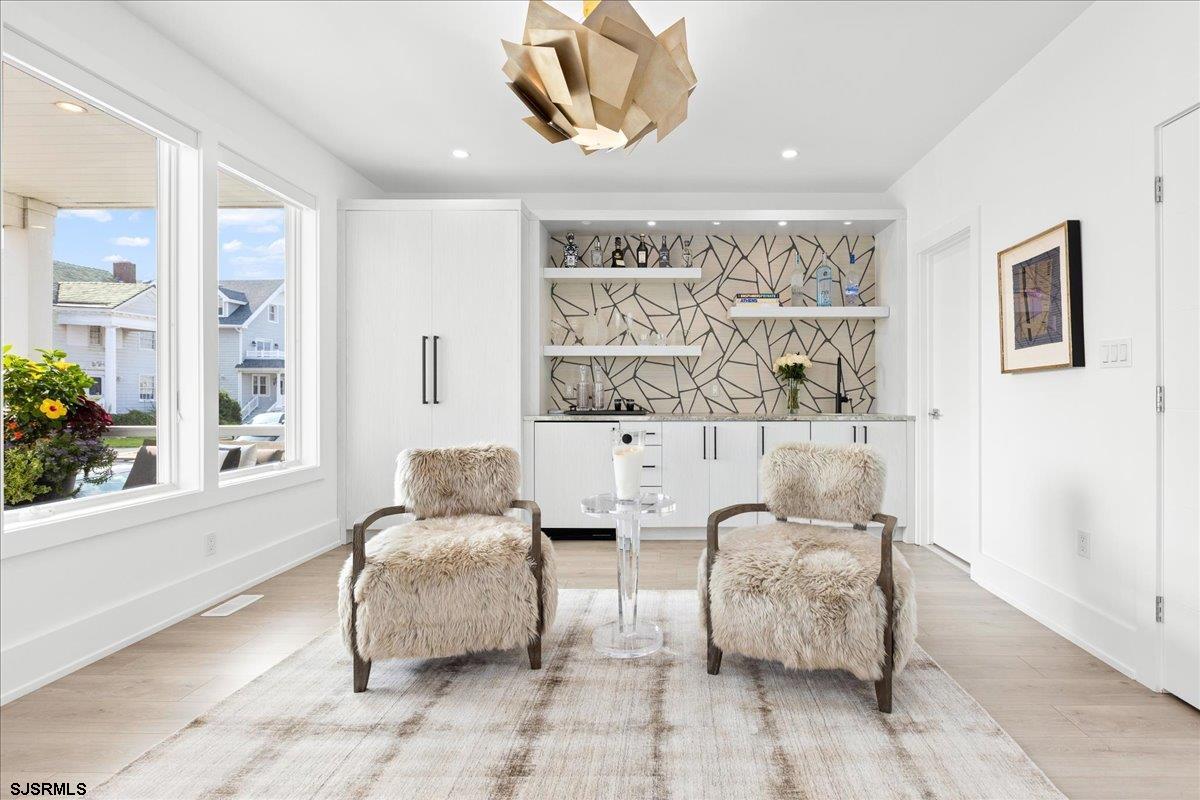 GORGEOUS BEACH BLOCK ESTATE ON DOUBLE LOT! This 5 bedroom 6.5 bath single family home built by one of area's premier builders, JOHN IRONS! A front porch welcomes you to this coastal retreat! As you step inside the home to the spacious living room, you'll be greeted by a cozy fireplace. The state-of-the-art kitchen features a double SUB ZERO refrigerator, WOLF double oven, and crisp white cabinets and granite countertops. Host memorable dinners in the elegant dining room or enjoy casual gatherings at the first-floor bar. The convenience of an ELEVATOR makes navigating this expansive home effortless. With five spacious bedrooms and the potential for a sixth, this home is designed to accommodate family and guests with ease. The second floor boasts four en-suite bedrooms, each offering privacy and comfort, making it ideal for visitors. The entire third floor is dedicated to the master suite, a true sanctuary with a 2 walk-in closets, luxurious master bathroom, and a private balcony overlooking the ocean. Every closet throughout the home features custom built-ins, providing both style and functionality. Plenty of storage as well. First floor stacked washer dryer for pool and beach access. Full laundry room with sink upstairs. Driveway parks 4 cars. Step outside to your own private oasis, complete with a heated saltwater pool, pool house with fireplace and outdoor bar. Close to Ventnor restaurants and Atlantic City night life. This home is not just a place to live—it's a lifestyle.