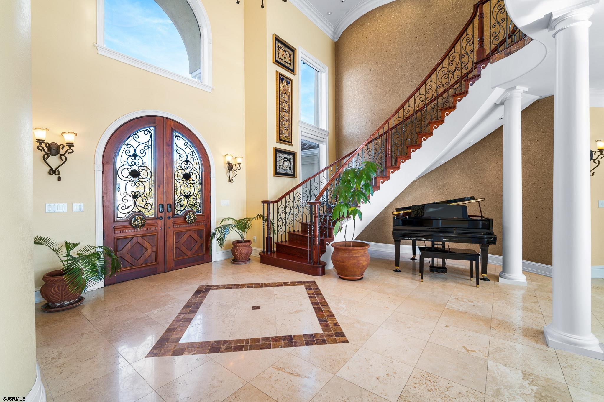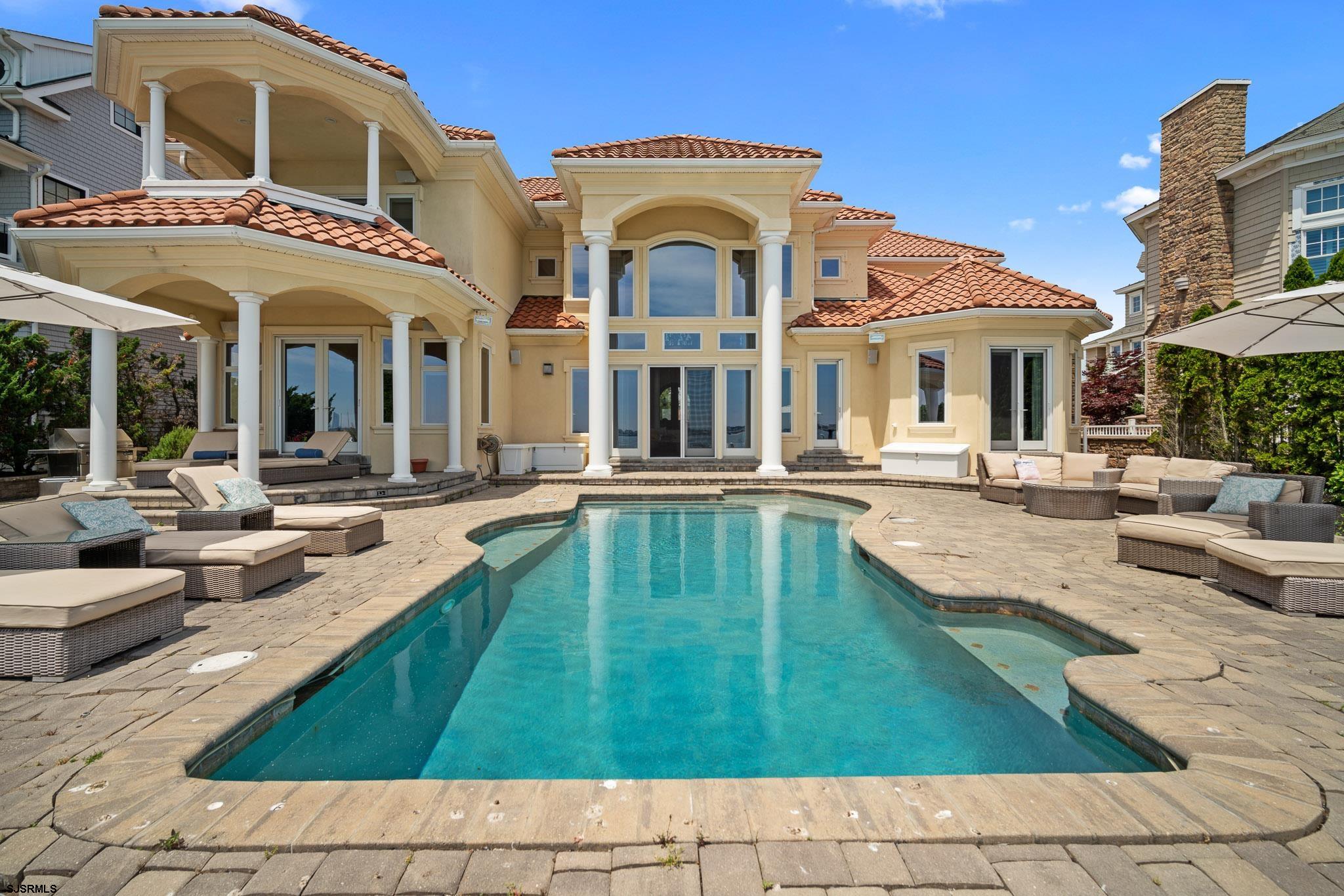 Welcome to West Shore Villa, a distinguished estate on Brigantine’s prestigious Gold Coast. Nestled on West Shore Drive, this property sits in the premier location with an open bay and unobstructed views of the Atlantic City Skyline, just minutes away from the Atlantic Ocean, Intracoastal, beach, and renowned casino entertainment. The West Shore Villa boasts striking curb appeal, lush landscaping, and an impressive 90 feet of bay frontage hosting deep water boat slips. The home showcases impeccable craftsmanship and carefully selected natural materials, seamlessly blending coastal exteriors with timeless interiors. Every detail exudes luxury, from travertine to wood, slate, and plush carpeting. The open interior design of this magnificent home is perfect for entertaining, with the main living areas facing the South, exposing sunrise to sunset views. The remodeled custom 560 ft² Chefs kitchen features wood cabinetry, a large, leathered granite island incorporating a recessed ice trough with running water accommodating six seats, illuminated by three Swarovski crystal chandeliers, three sinks, expansive granite counter spaces, two separate Wolf ranges with commercial hoods, two Wolf convection ovens, Sub-Zero appliances, two dishwashers and a bar area with a wine cellar. The sunken bay lounge offers a warm, inviting feeling with 21-foot ceilings as soon as you enter the space. The attention to detail throughout the home, including custom molding, a towering sky bridge, 2 gas fireplaces, and oversized windows, allow views of the open bay and the sparkling pool to create an incredible ambiance to share many fond experiences with family and friends. This magnificent home boasts six bedrooms (4 ensuite, 2 Jack & Jill) and a large 420 ft² game room prewired for media entertainment. The West Shore Villa is an audiophile's dream, hosting an expansive Savant smart home operating system with Alexa voice connectivity controlling audio, video, HVAC, Lutron lighting, firepit torch, and security from the touch of your iPhone or Android anywhere cellular coverage is offered. The music server streams sound to 17 separate zoned areas in the interior and exterior of the home. The home is blanketed with sonance speakers and over 120 controllable lights by voice. The media room has a built-in 7.2 Totem audio system for a ground-shaking theater experience. A steam shower has been upgraded in one of the 6 bathrooms. The villa boasts a large saltwater pool with a tanning ledge, and a heater has been installed to take advantage of those early summer chilly evenings. The pier leads out to boat slips and a dock with a dining table flanked by lounge seating to enjoy many meals and watch the bay action on those beautiful summer days. With a renewed 10-year riparian lease, a jet ski slip and a boat lift can be added by submitting plans to the state. A custom gas firepit and planter constructed with 40 tons of stone and built-in amphitheater speakers were installed for year-round outdoor enjoyment on the waterfront. An oversized two-car garage will accommodate 2 automobiles and 2 motorcycles and boasts a commercial Manitowoc Ice Machine. The garage ceiling height will allow 2 car lifts to be installed if desired. In addition, the garage has a large built-in loft with LED lighting for storage and a Dero 9 bicycle commercial hanging bike rack. The large paver driveway accommodates 10 vehicles or advantageous off-street parking for boats and jet skis. The crawl space has poured concrete flooring with added lighting and 3 large commercial dehumidifiers to protect the home from moisture. The front of the estate offers a private Zen sitting garden for seasonal flowers and herbs. Bayfront oversized lot estates with deep water access and riparian leases with these amenities rarely come to market on the Brigantine Gold Coast. This opportunity is available for instant enjoyment to create everlasting memories at West Shore Villa.