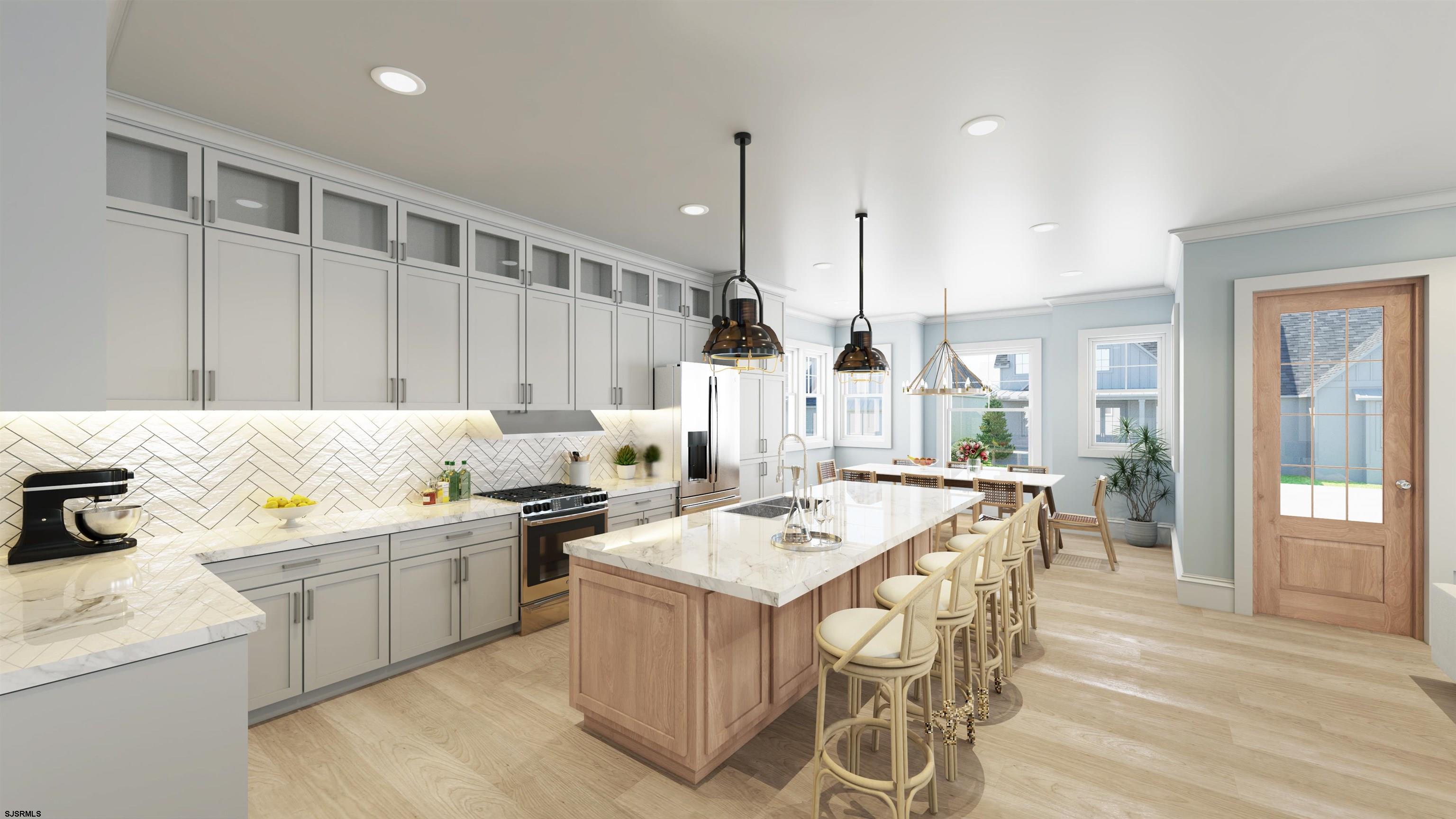 Introducing 2045 West Avenue, brought to you by Ocean City's most sought after builder "Elcon Custom Builders". This immaculate NEW CONSTRUCTION single family home is situated in the most coveted part of the island, just a quick stroll from the renowned Goldcoast beaches which are known for their expansive shorelines, making them the widest on the island. Featuring a 5 stop elevator, 5 bedrooms, 4 full baths plus a half bath and wet bar and spanning close to 3,000 square feet. This luxurious property boasts high-end finishes and custom details throughout, a true testament to the craftsmanship of what one can expect from an "Elcon" home. The outdoor oasis is an entertainer's dream, with a Gunite pool featuring gas heat and LED lighting, a stamped concrete pool deck, and a pool cabana perfect for enjoying those summer nights. The fenced-in rear yard provides privacy, while the landscaping package ensures a picturesque setting. An electric car charger and Bermuda shutters add to the convenience and elegance of this home. Step inside and experience the epitome of luxury living. The interior features site-finished white oak hardwood floors, and a gas fireplace for added ambiance. The gourmet kitchen is a chef's delight, equipped with GE Cafe appliances, Medallion kitchen cabinets, quartz countertops, and under-cabinet lighting. The attention to detail continues with wainscoting, crown molding, and shiplap trim throughout, as well as Moen fixtures, custom light fixtures, and tiled bathrooms with frameless shower glass. The master suite is a serene retreat, complete with a vaulted ceiling, recessed lights, and a rooftop deck with stunning views. Additionally, the home offers a 2-zone HVAC system, dual tankless hot water heaters, solid core doors, James Hardie Siding, Marvin Windows and a multicam security system, this home seamlessly combines luxury with modern convenience. Don't miss the opportunity to own this exceptional property. Schedule your private tour today and experience the epitome of coastal elegance. Plans provided upon request.