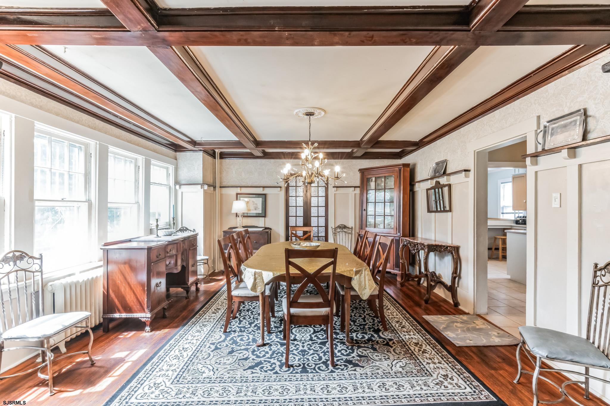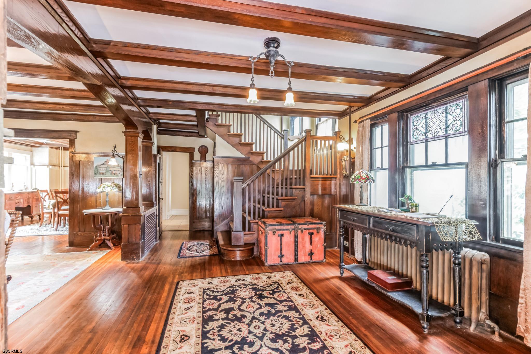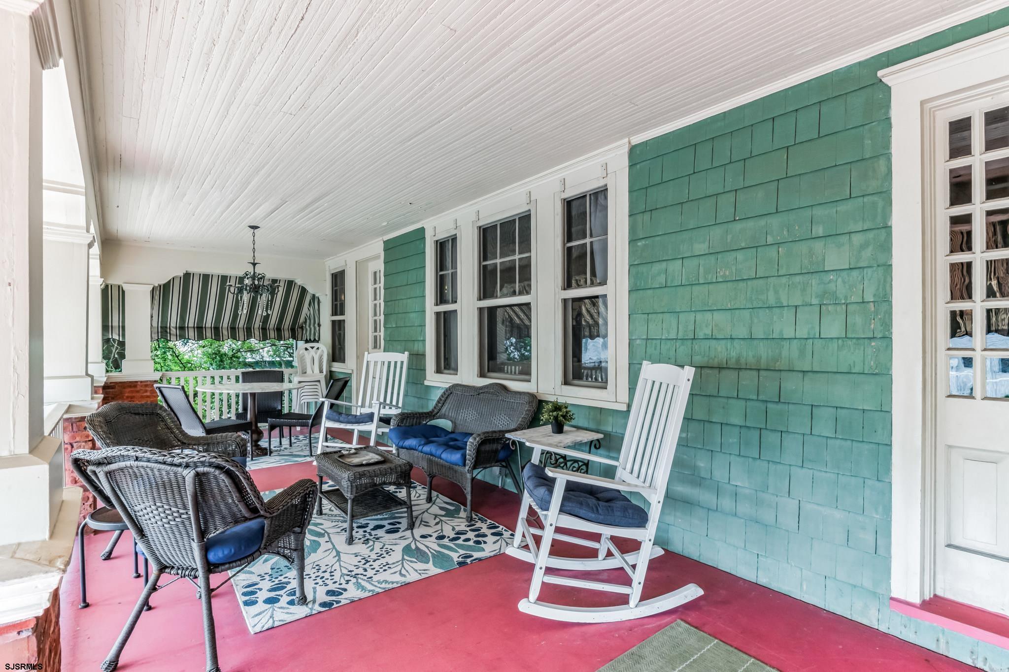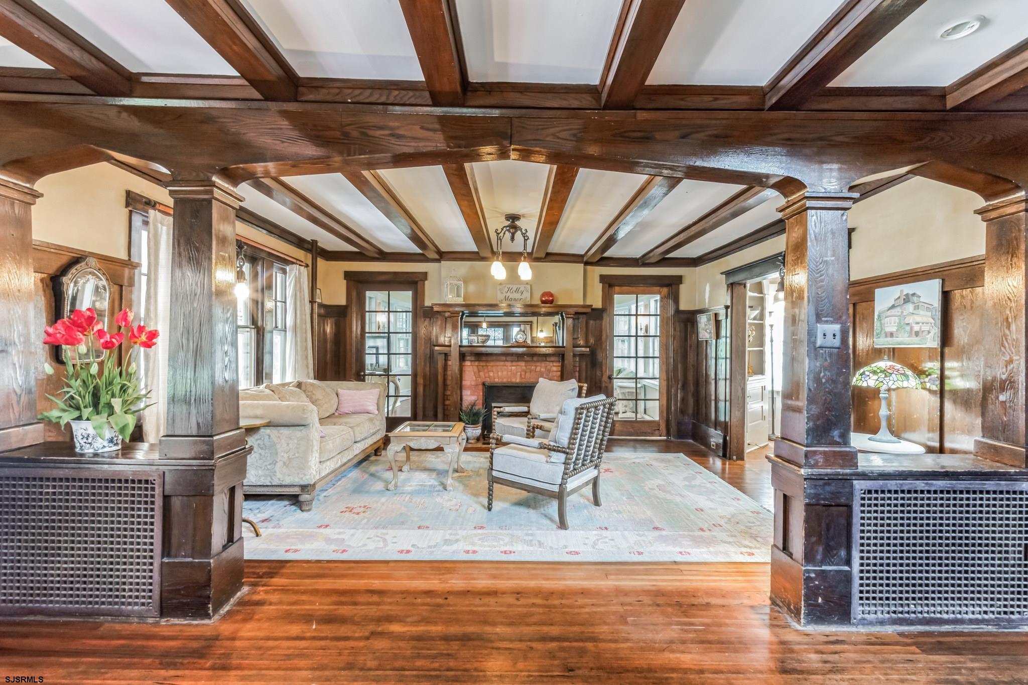 25 Rooms 11 Bedrooms 7.5 Baths. Step into the enchanting world of Holly Manor, a historic gem nestled among the ancient Holly Trees. Dating back to 1909, this preserved estate offers a unique blend of old-world charm and modern conveniences, making it the perfect Home for families and friends. As you step through the doors of Holly Manor, you are transported back in time to a bygone era of elegance and sophistication. This Craftsman Style Home boasts 11 bedrooms, each thoughtfully designed with individual sinks, ceiling fans, and air conditioners to ensure your comfort. Many of the bedrooms feature private baths, TVs, and breezy porches, offering a tranquil sanctuary for relaxation. The heart of the manor lies in its spacious dining room, where family, friends and guests can gather for memorable meals and lively conversations. Adjacent to the dining room, a cozy library beckons with a piano, flat screen TV, and an array of books and games for all ages to enjoy. The updated kitchen, complete with a breakfast bar and nook, provides a welcoming space for culinary adventures and shared moments. One of the most enchanting features of Holly Manor is the beautiful oval sun-room, bathed in natural light from its many windows, and the inviting veranda adorned with wicker rockers and marble furnishings. From these vantage points, family, friends and guests can admire the century-old holly trees, period gardens, and expansive yard, creating a serene backdrop for relaxation and entertainment.Throughout the manor, you will discover original leaded stained glass windows, beamed ceilings, chestnut woodwork, and gas lighting fixtures that evoke a sense of nostalgia and charm. Antiques are thoughtfully placed throughout the home, adding to its unique character and timeless appeal. For those seeking additional accommodations, the attached garden level apartment offers two bedrooms, a bath, and a beautiful brick patio for unwinding in the sea breeze. With 6 off-street parking, and other amenities, Holly Manor ensures a seamless and enjoyable stay for all. Immerse yourself in the rich history, charm, and ambiance of Holly Manor, where the past meets the present in perfect harmony. Experience a touch of nostalgia with all the comforts of modern living, and create unforgettable moments in this one-of-a-kind sanctuary by the sea. Location Location Location. Only one block to the Ocean, Beach and Boardwalk. Centrally located to everything in Ocean City; downtown shopping, dining, tennis, and basketball courts are only blocks away.