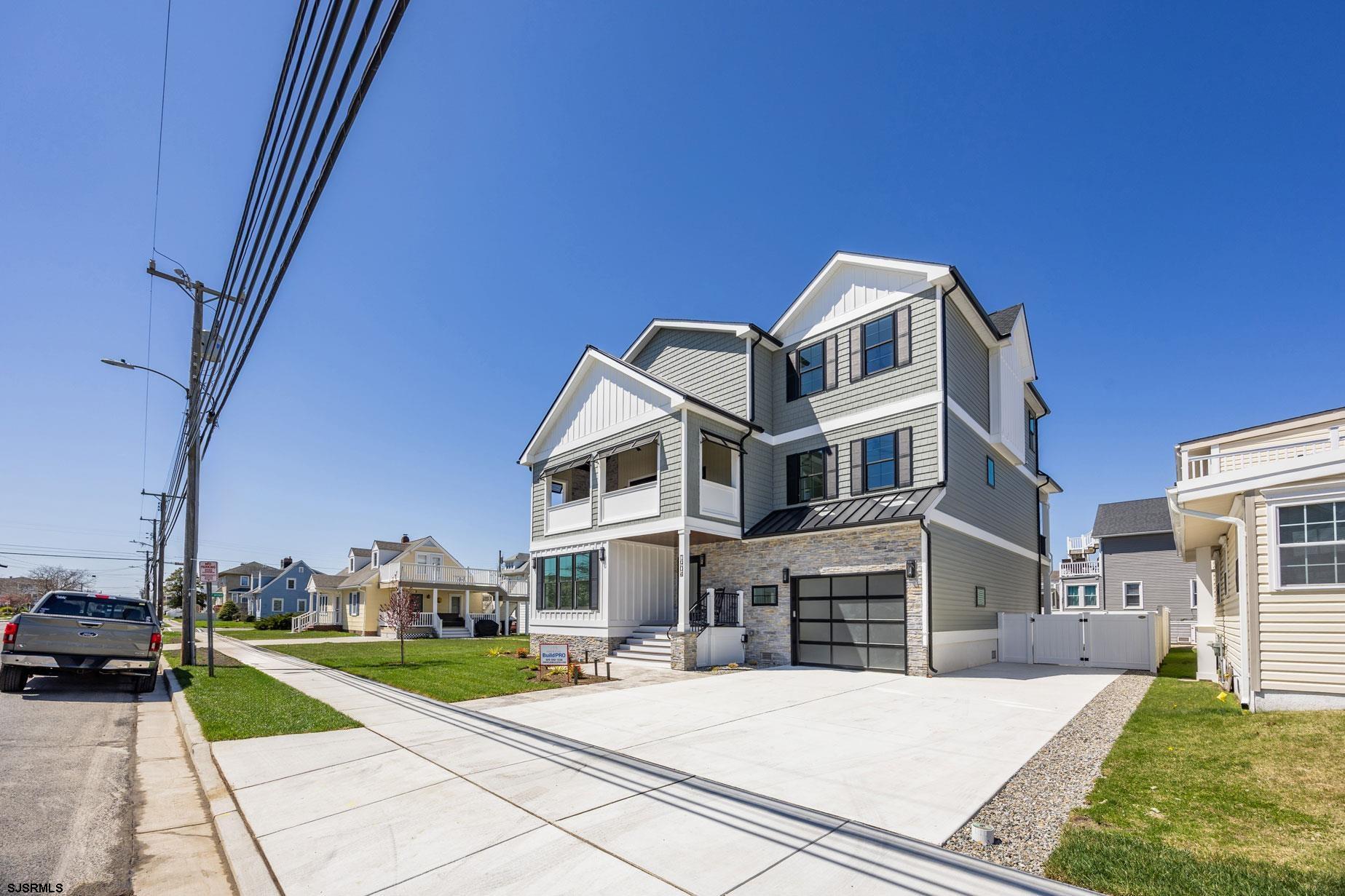 Welcome to your new oasis at 1904 Atlantic Ave, North Wildwood! This exceptional single-family home boasts five spacious bedrooms, complemented by an additional den that can effortlessly serve as a separate bedroom or a productive home office. This is a new build with time to pick colors and finishes. The heart of the home is the modern kitchen, featuring a top-of-the-line stainless steel appliance package and stylish island seating, perfect for casual dining or entertaining guests. The inviting living room is enhanced by a cozy gas fireplace, creating a warm and welcoming atmosphere for family gatherings or quiet evenings. Enjoy the convenience of a four-stop elevator that makes accessing all levels a breeze. Step outside to the open-air deck at the front of the house, complete with a fireplace, ideal for relaxing evenings under the stars. A back staircase adds to the home's unique layout, leading to the upper levels with ease. The property also includes a one-car garage and ample storage space, ensuring you have room for all your belongings. Situated on a generous 60 x 100 lot, with plenty of room for a pool to outdoor kitchen, this home combines modern luxury with thoughtful design, making it the perfect retreat in North Wildwood.