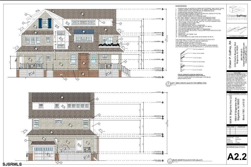 Luxury Beachside Living in Brigantine, NJ Welcome to your dream home! This stunning new construction, custom designed by renowned architect Chaser Gaffney, offers the perfect blend of modern elegance and coastal charm. Centrally located on the BEACH BLOCK on 20th St South located in the prestigious A-Zone section of Brigantine Island, this home is a masterpiece of design and comfort. Key Features: 6 Spacious Bedrooms: Perfect for large families or hosting guests, each bedroom provides a serene retreat with ample natural light and high-end finishes. 6.5 Luxurious Bathrooms: Featuring contemporary fixtures and finishes, including a spa-like master bathroom with a soaking tub and walk-in shower. Expansive 3,900 Square Feet: Thoughtfully designed to maximize space and comfort, this home offers a seamless flow between living areas. Gourmet Kitchen: Equipped with top-of-the-line stainless steel appliances, custom cabinetry, and a large island, perfect for entertaining. Multiple Decks: Enjoy the fresh ocean breeze and stunning views from the various decks, ideal for outdoor dining and relaxation. Attached Garage: Convenient parking and storage with direct access to the home. Service Alley located in rear of property for easy access. Situated on a 65 x 90 Lot: Plenty of outdoor space for gardening, recreation, and privacy. Prime Location: Situated just 8 houses from the beach, you’ll have easy access to the beach, restaurants, and local attractions. Minutes to Atlantic City Casinos, Nightlife, Ocean City Boardwalk is a short drive away. This exquisite home is an exceptional opportunity to live in one of Brigantine’s most desirable areas. Don’t miss your chance to experience luxury beachside living at its finest!