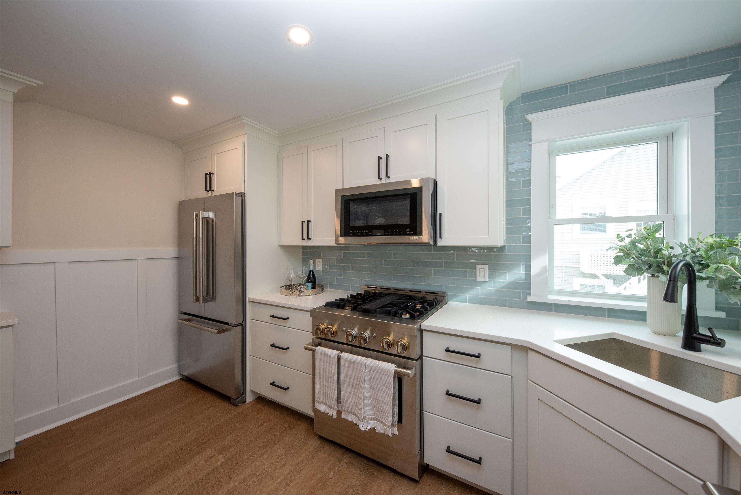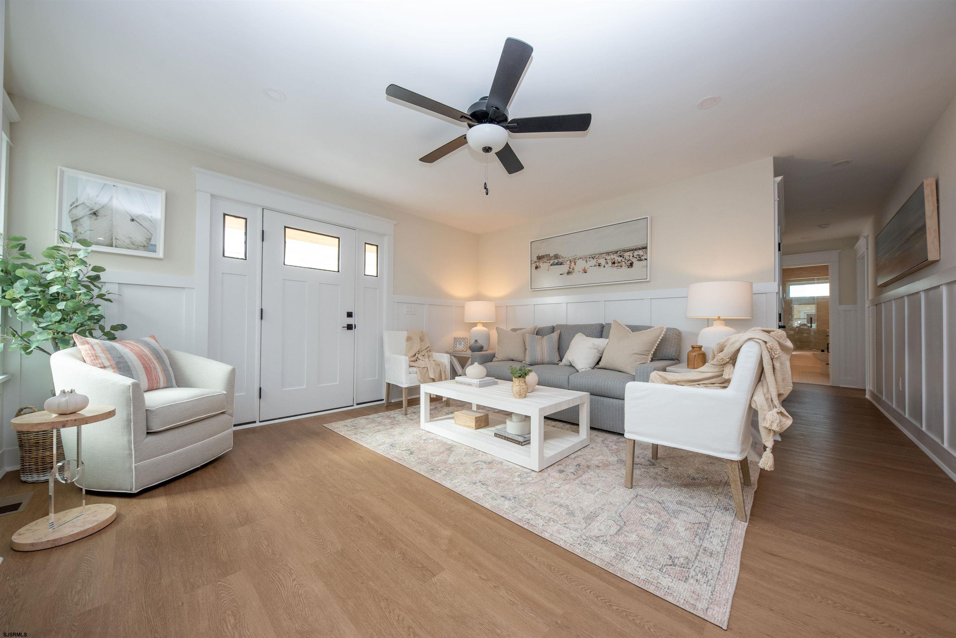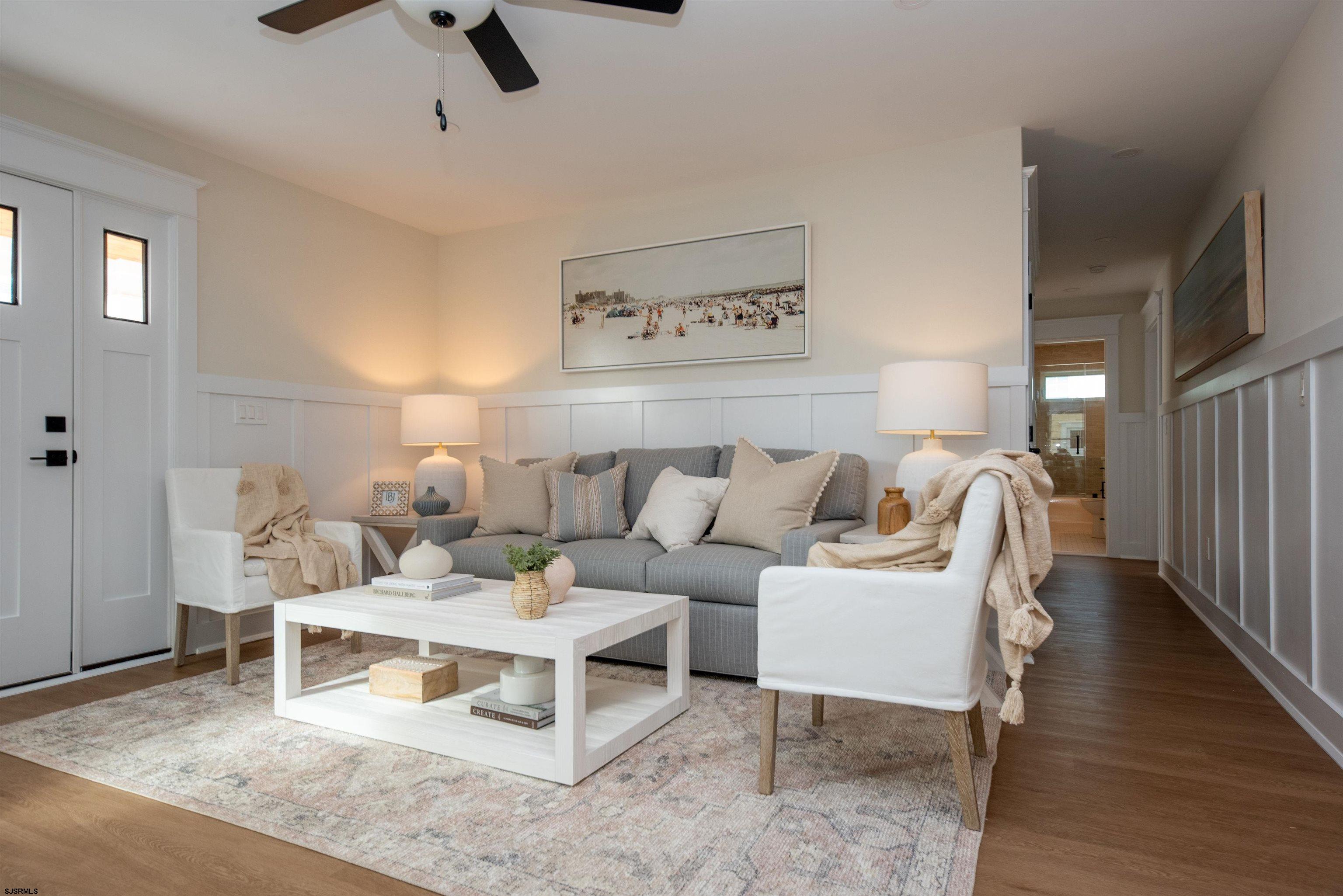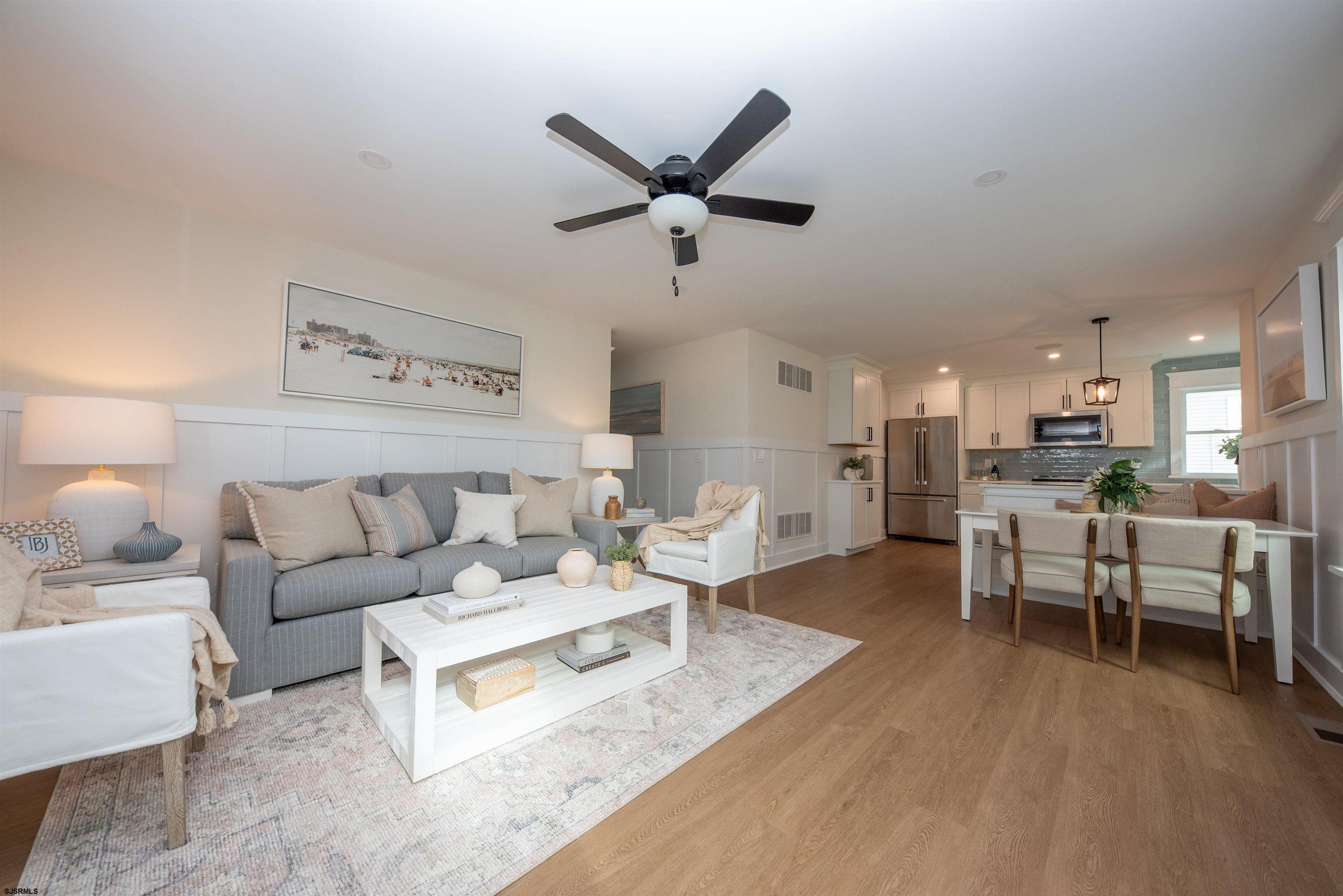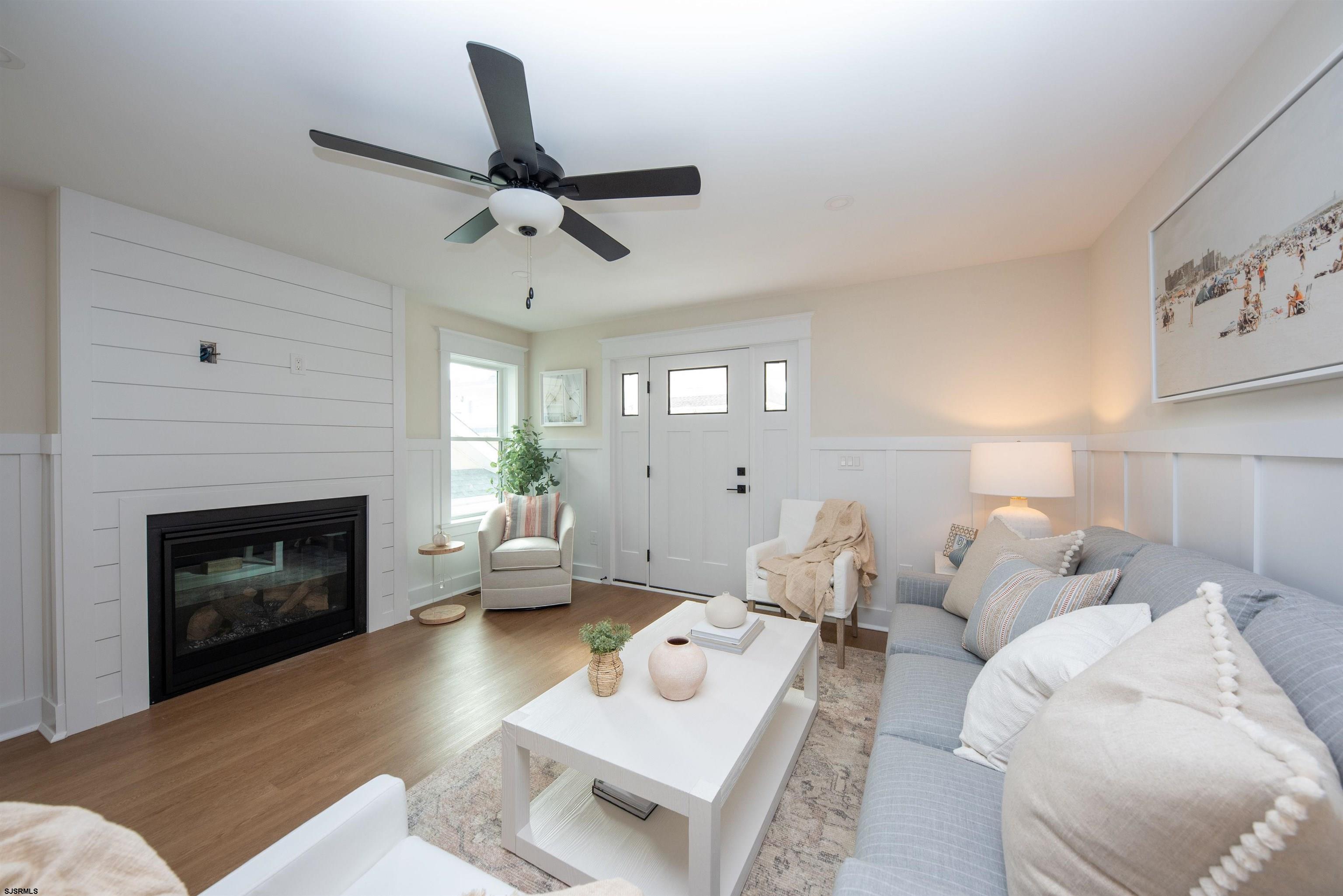 Desirable New Construction Northend first floor featuring 3 bedrooms, 2 full baths, fully furnished & turn key ready! Classic front porch off the spacious living room with gas fireplace, equipped kitchen featuring Jenn Air appliances with Pro Grade range, granite counters & tile backsplash, dining area with a buffet bench, High efficiency gas heat & tankless water heater, central air, ceiling fans and more! One car garage with fully enclosed outside shower cabana room to rinse off after a day at the beach. Great location to beach and boardwalk! Awesome rental potential if you're looking for an investment property or an ideal retreat to relax at the shore!