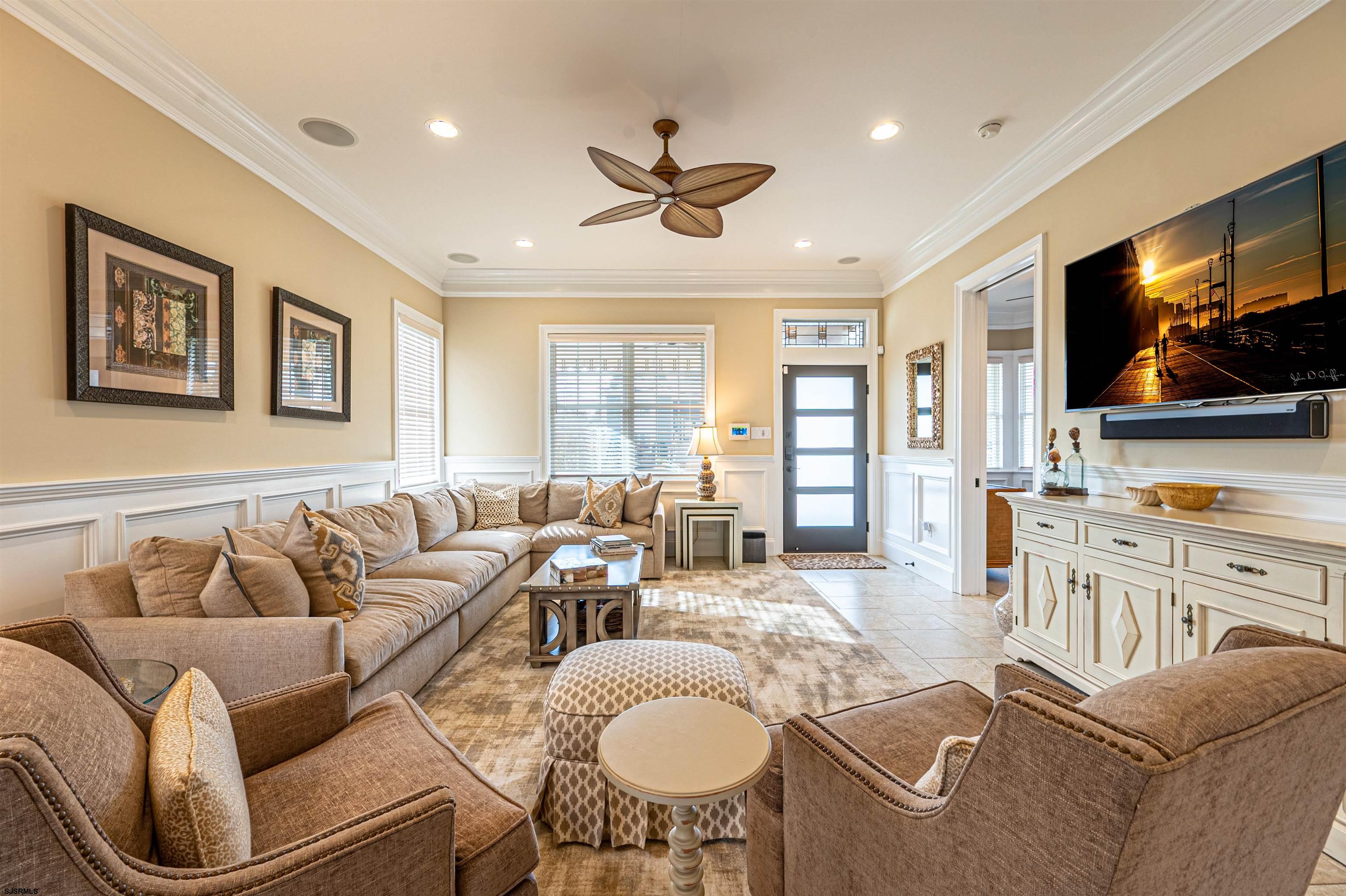 Welcome to the home of your dreams! This absolutely stunning 7-bedroom, 5.5-bath residence is perfectly situated on an expansive 50' x 125' lot, just one block from the beach. Known for its wide street and oversized lots, Cedar Gove is an idyllic location in Margate. The exterior features Hardy Board siding, a full-size garage, and a driveway that accommodates up to five cars. Relax on the spacious front porch with triple awnings, providing the perfect spot to enjoy ocean breezes. The paved backyard is an entertainer's paradise, complete with an outdoor kitchen and ample room for a pool. Inside, this home impresses with its oversized rooms, high ceilings on the first floor, and elegant curved wall edges throughout. The wainscoting adds a timeless touch of sophistication. The open-concept layout includes a large living room, dining area, cozy den with a built in fireplace, and a gourmet kitchen equipped with custom cabinetry, Viking appliances, sub zero refrigerator and freezer, a pantry, and an oversized island. A first-floor ensuite bedroom (the 7th bedroom) provides added flexibility, along with a convenient powder room and one of the home's two laundry rooms. Upstairs, the primary suite is a luxurious retreat featuring custom design details, a spacious walk-in closet, and a spa-like bathroom with a large shower and multiple showerheads. The bedroom walks out to a large deck with ocean views. Three additional bedrooms and two full baths complete the second floor, along with a second laundry room equipped with a sink. The third floor offers two oversized bedrooms and a full bath, ideal for guests or as additional living space. Additional features include negotiable furniture and meticulous attention to detail, making this home truly move-in ready. Whether you’re hosting family and friends or simply enjoying the stunning location, this home checks every box. Don’t miss your opportunity to live just steps from the beach, in close proximity to renowned restaurants, boutique shops, and entertainment. Schedule your tour today—this extraordinary property won’t last long!