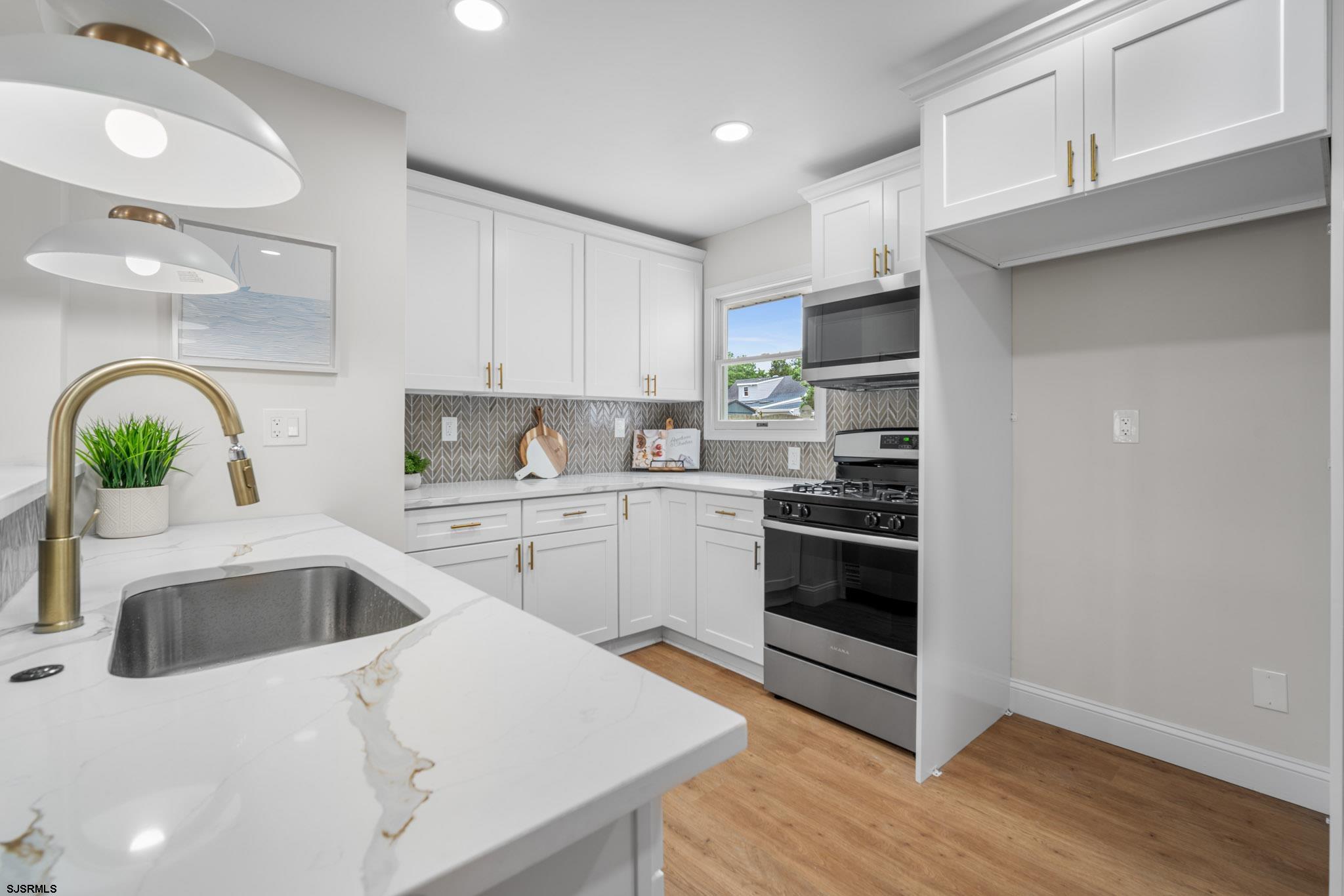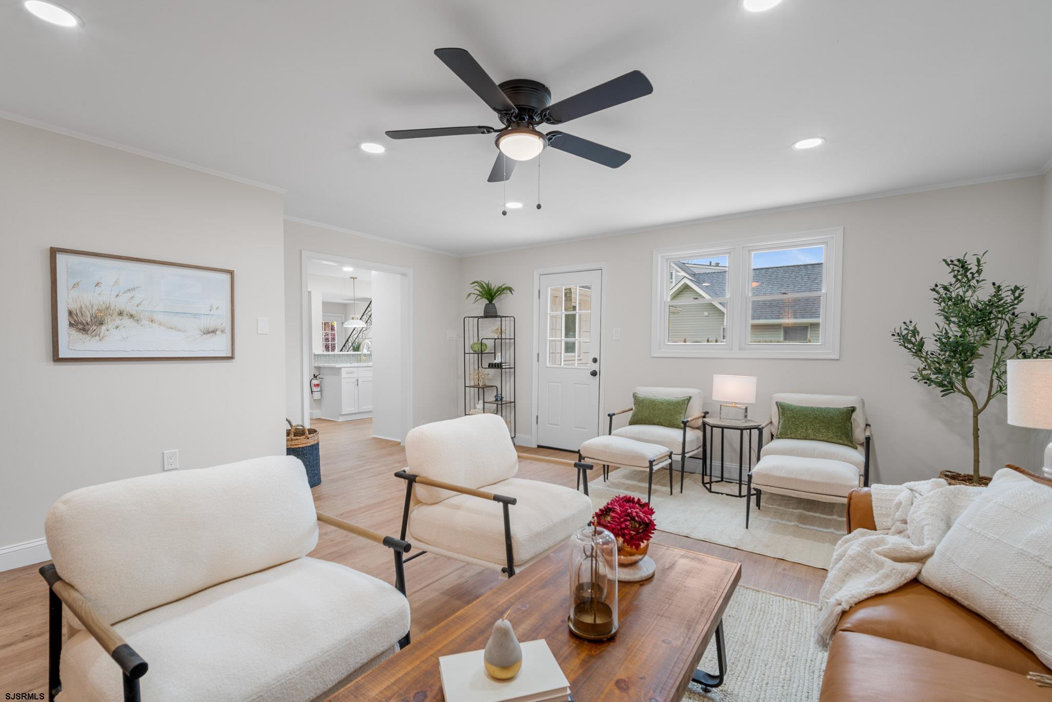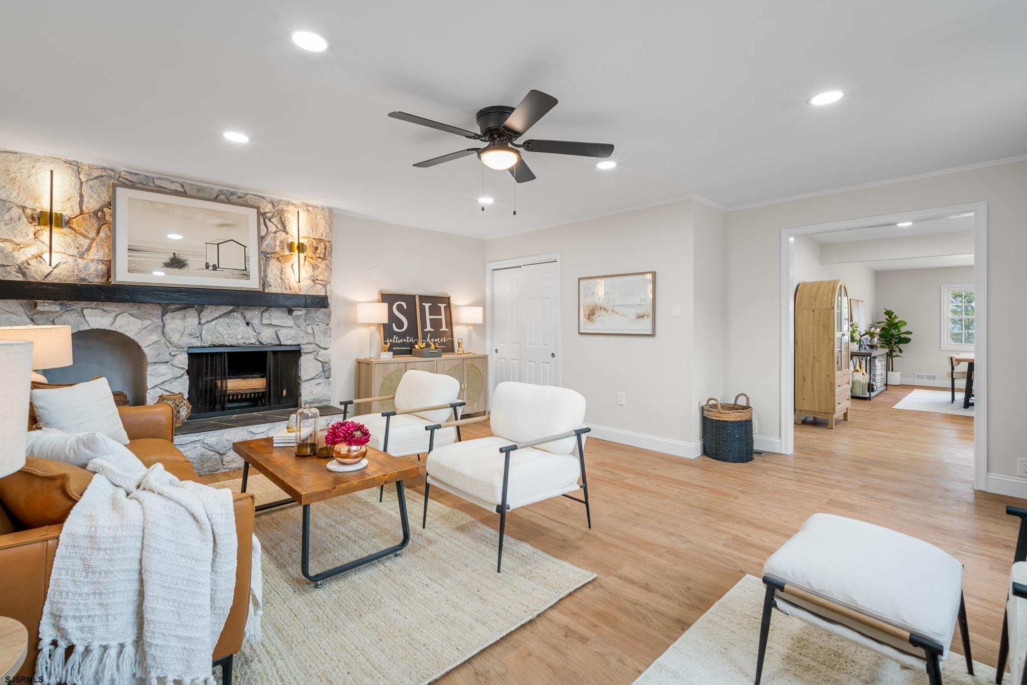 Classic Cape Cod vibes meet bright, modern luxury in this gorgeously renovated gem in Somers Point! Step inside this stylish 4 bed 2 bath stunner and instantly feel right at home! From its spacious & airy open concept layout, to the warm luxury vinyl plank flooring and recessed lighting through out, every inch feels fresh, bright, and thoughtfully designed. The kitchen is a showstopper, with soft close dove-tailed cabinets, sparkling quartz countertops, a glass tile backsplash, and stainless steel appliances plus a spacious breakfast bar perfect for coffee or cocktails! Both bathrooms have been transformed into spa-like retreats, with custom tiled showers & Va cities topped with real stone countertops for an elegant touch. On chilly evenings, curl up beside the built in wood burning fireplace in the living room or sip your morning coffee on the screened-in porch overlooking the fully fenced yard, ideal for pets, outdoor play, or summer barbecues! *Backyard is seeded with eco soil (rich soil + seed + fertilizer)* With a brand new roof, a new HVAC system, and move-in readiness from top to bottom, this sparkling home offers functionality and style in equal measure. Schedule your tour today!
